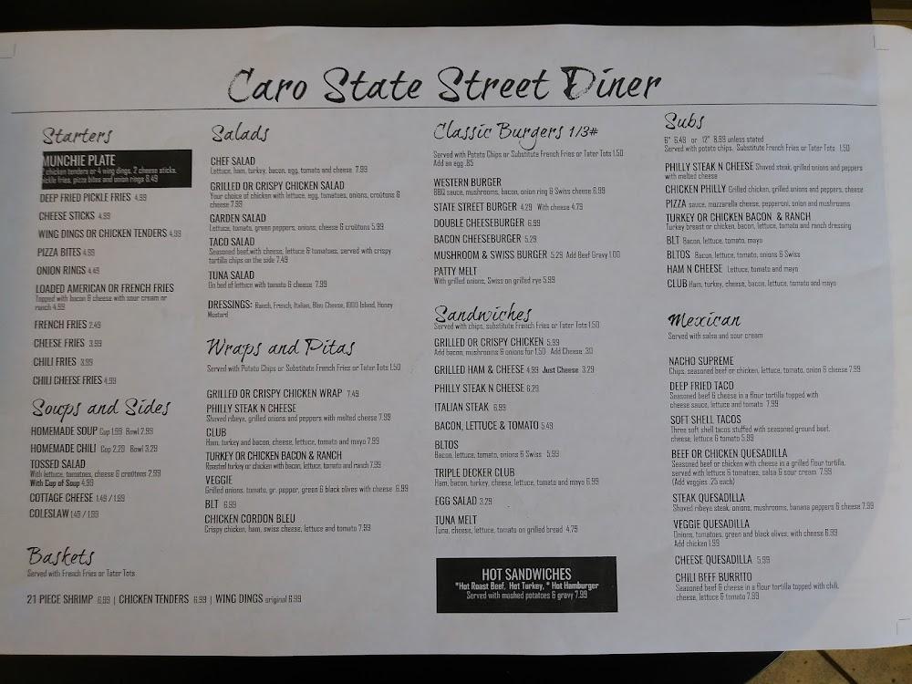 Welcome to Caro State Street Diner, your go-to spot for delightful meals in a relaxed and friendly atmosphere! Conveniently located at 373 N State St, Caro, MI, we offer a diverse menu featuring breakfast, lunch, and dinner options, all at an affordable price range of $1-10. Enjoy our excellent coffee and a wide selection of teas while savoring local specialties. With services like takeout, delivery, and dine-in available, we cater to all preferences. Our diner is wheelchair accessible, making it a great choice for everyone. Join us for a comforting meal today!